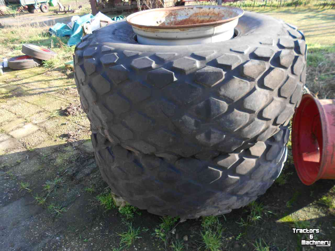 2 brede gazon banden of mesttankbanden op deutz velgen kleine steek